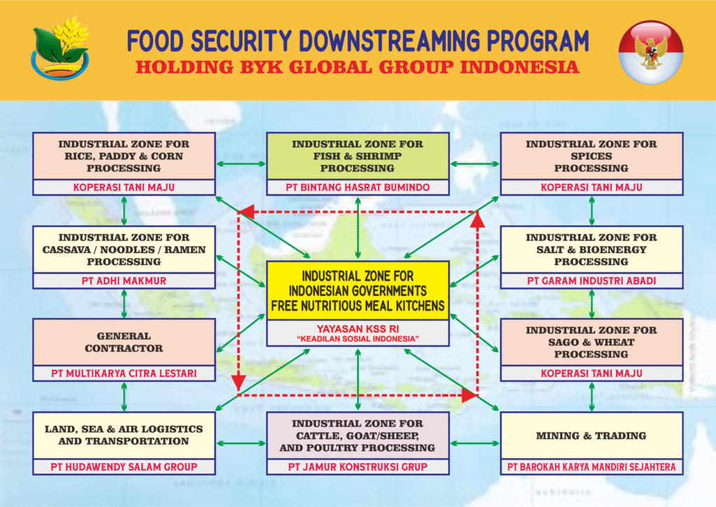PT BYK GLOBAL INDONESIA is a holding company group that manages and develops a diversified portfolio of strategic businesses, focusing on food security, industrial strengthening, and sustainable natural resource management. With a vision to become a globally integrated and competitive corporation, the company operates across key sectors including food, agriculture, fisheries, mining, and integrated industrial estates.